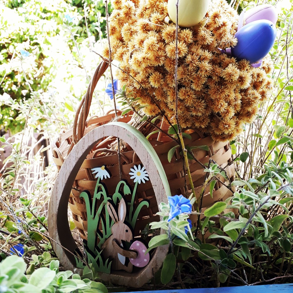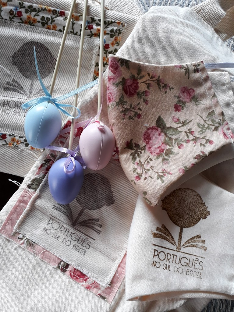 Easter/Páscoa (‘pas-cou-a) at home, wearing masks